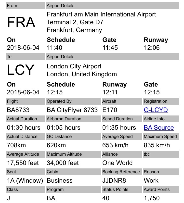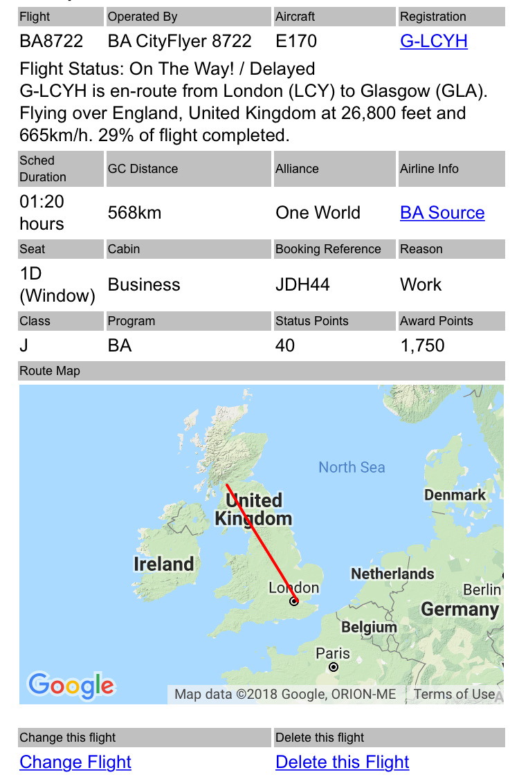 | trip47.org automatically records your flight data so that you can look it up at a later stage. This includes information on the aircraft that operated your flight (type & registration), the actual departure & arrival times, route taken, speed & altitude. |
