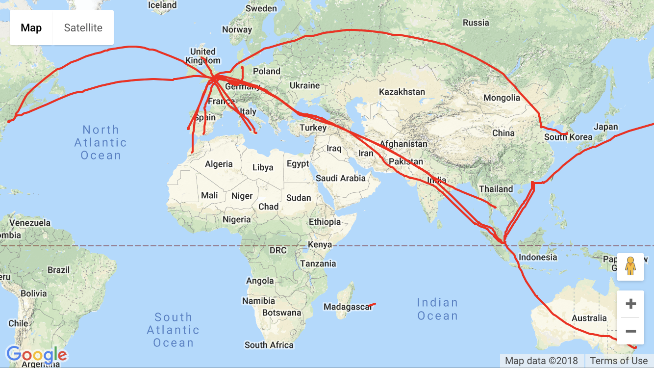 | Know when and where you're going. Ever wondered where you'll be on that weekend? Or if there is enough time between those flights? trip47.org provides you with a list of all your upcoming flights, so you'll always have full transparency over where you'll be. If you want to see them on a map - you can do that too. |